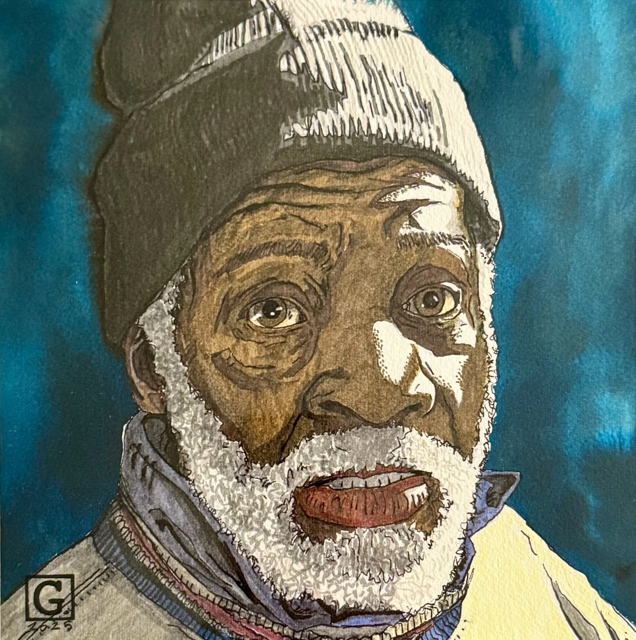 Mixed media: watercolor, graphite, pen and ink on Arches cold pressed archival watercolor paper.
